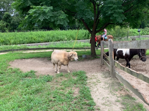 乗馬コースのすぐ近くにも動物たちがいるので、迫力あるサラブレットたちと一緒に他の動物も見て楽しめます。