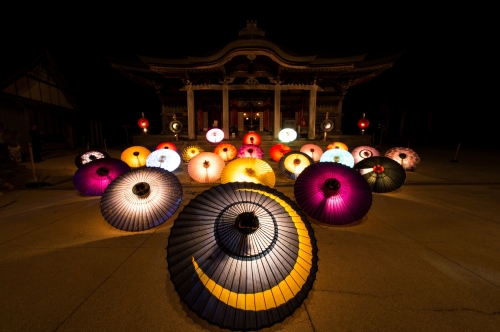 毎年8月に行われるお盆の大献灯では、和傘の中に明かりを灯してライトアップが行われます。JRの山陰ディスティネーションキャンペーンではポスターにも採用されており、老若男女問わず人気のイベントとなっています。