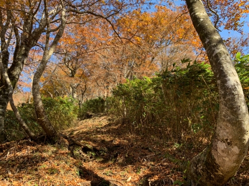 鎖場を越え、7/10から8/10までの道は、ブナ林の尾根道が続きます。