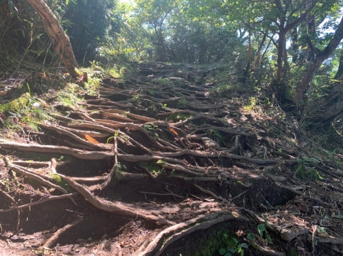 立派なブナの根が網目のようにはりめぐらされていて、足場を形成してくれています。