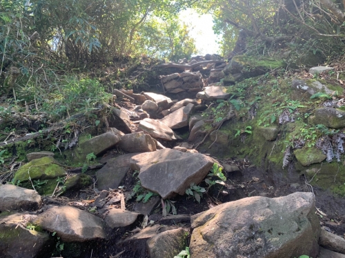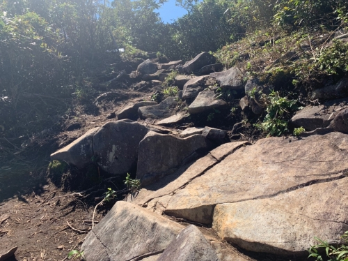 この岩塊はこしき岩といい、登るときはもちろん、下山時もこの辺りが一番足場が悪いです。