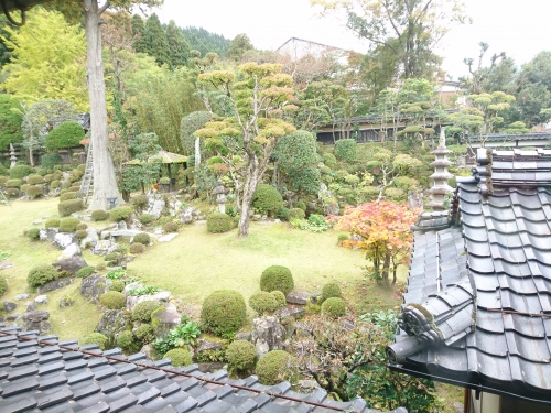 窓からは、江戸時代からの池泉式庭園が取り入れられた美しいお庭も眺めることができます。