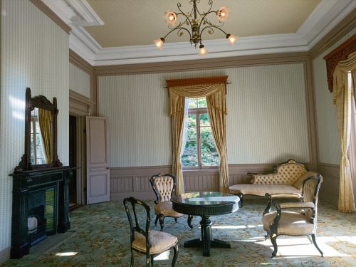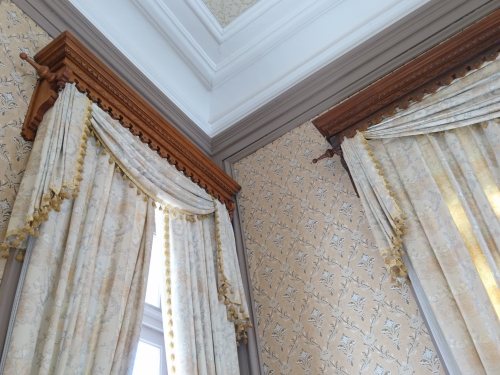 各部屋のマントルピース(暖炉飾り)や、和洋折衷の技術が施されたカーテンボックスなどからは、室内の細部に渡って意が払われていることが見て判ります。
