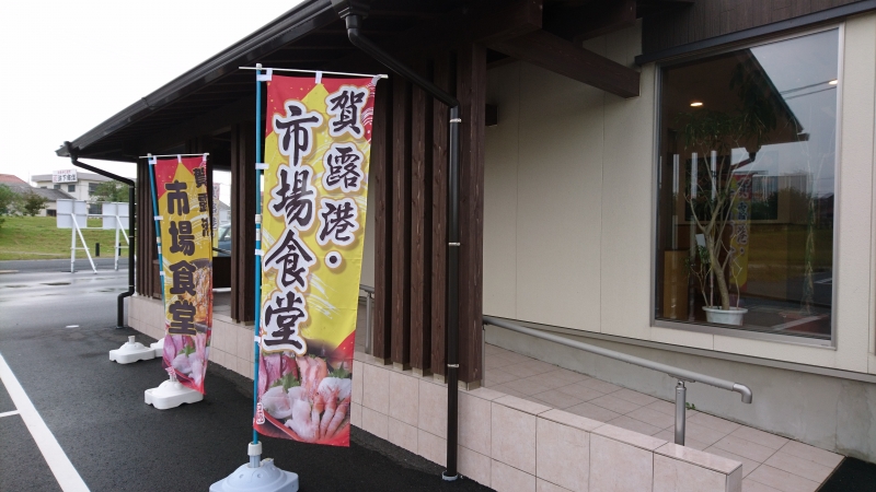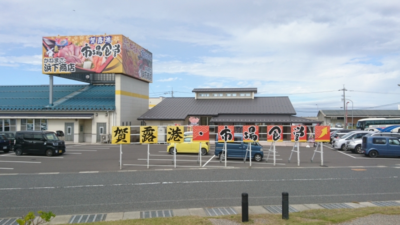 道なりに車を走らせていくと、すぐに大きな駐車場を備えた賀露港・市場食堂に到着します。
