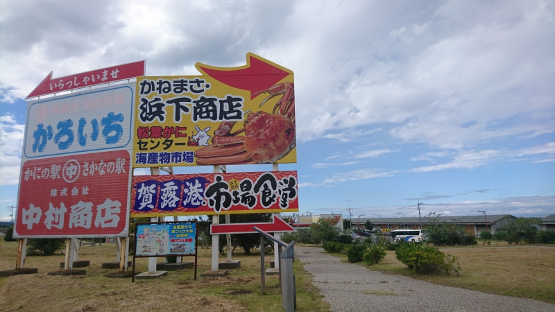 賀露で有名な観光処である「かろいち」や「わったいな」の道向かいにあり、道路沿いには判りやすい大きな看板が出ています。