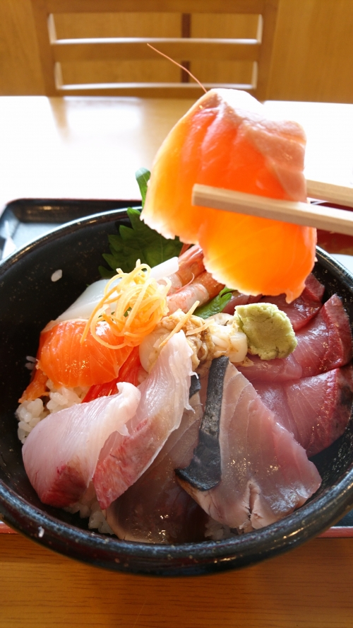 漁港近くでのお食事というと、やはり海鮮丼!賀露港・市場食堂では新鮮なネタがたっぷりと乗った海鮮丼も税込980円です!