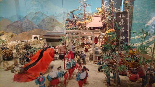 2階でぜひじっくりと見て頂きたいのは、「山のめぐみ」という、紙人形の大型ジオラマです。