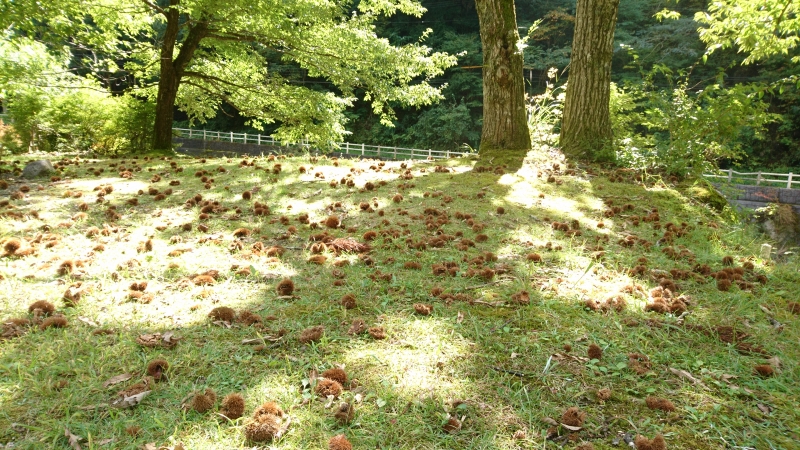 公園には小川が流れ、秋にはどんぐりやくりがゴロゴロ落ちています。