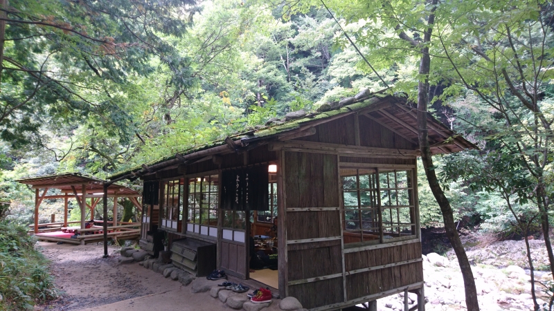 奥に進むと、川床席や赤毛氈の席もあり、美しい自然の中でお食事が楽しめます。