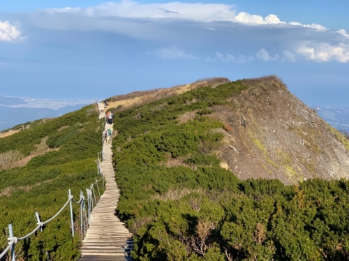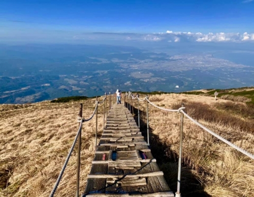 6合目辺りまでは、登山者の間で「地獄の階段」や「階段地獄」と呼ばれている階段が続きますが、その後は見晴らしも良く、絶景を観ながら山頂まで歩けます!