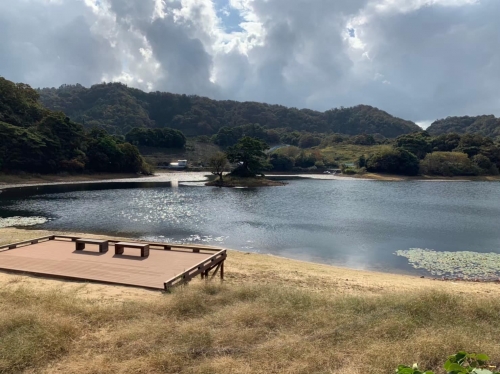 鳥取砂丘のすぐ近くにある、金運UPのパワースポットとしても知られている「多鯰ヶ池(たねがいけ)」。