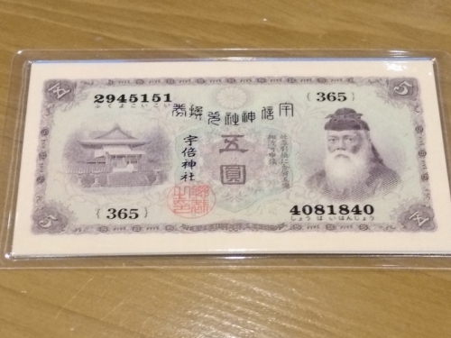その後も大正・昭和と数回に渡り、五円・一円紙幣の図柄に選ばれ、古くからお金に大変ご縁がある神社として知られています。