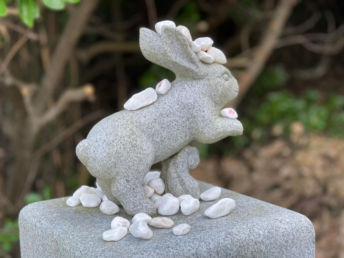 縁結びをはじめ、皮膚病、傷の平癒にご利益があるとされていて、境内には可愛らしい白うさぎの石像も。