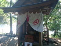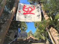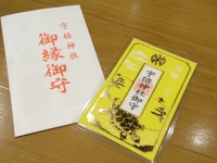 お守りの裏面には宇倍神社が描かれた明治32年に発行された五円紙幣