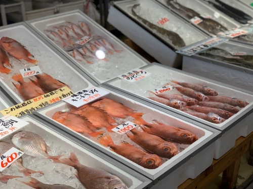 地元のとれたての鮮魚が並ぶ海産物直売所で、新鮮な魚介類がお値打ち価格で手に入ります。
