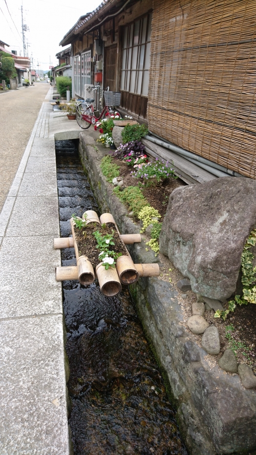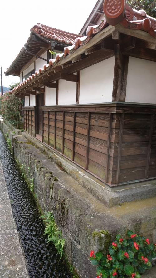 また、家々の前には水路があります。この地を治めていた亀井玆矩(かめいこれのり)が城下町の大改修の際に、土地の特徴を利用して作った水路網が現在でも活きています。