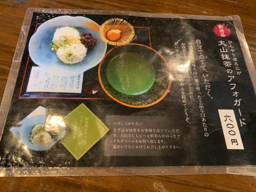 風情を感じさせるデザートやドリンクも豊富で、大山山麓のお抹茶や昔なつかしの冷やしあめ、アルコールメニューなどもありました。
