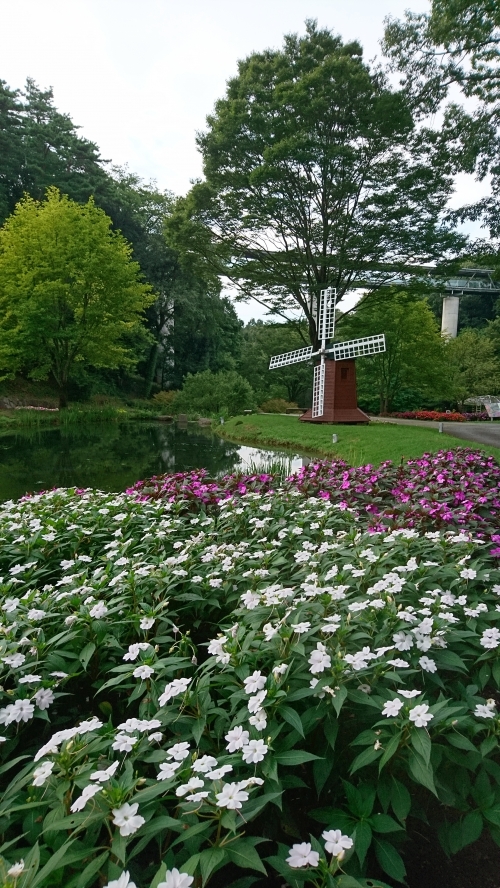 秋にはとっとり花回廊を代表する景色でもある、サルビアによる真っ赤な花の丘が作り出されます。実際に訪れた夏の終わりには、秋に向けて景色が変貌していく様子が感じられました。