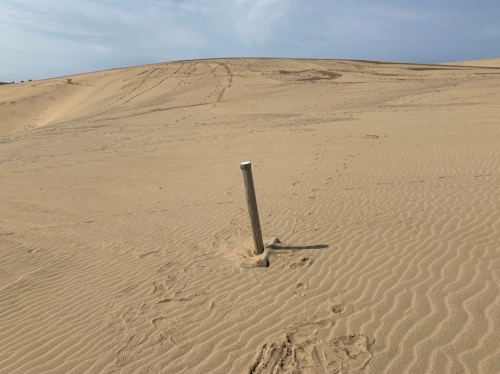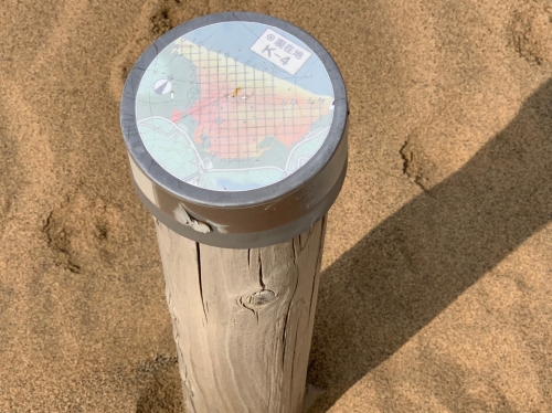 また、砂丘内には100m間隔で杭が立てられており、杭の上には番地と共に砂丘全体のマップが書かれていて、いま自分がどのあたりにいるのかを把握することができます。