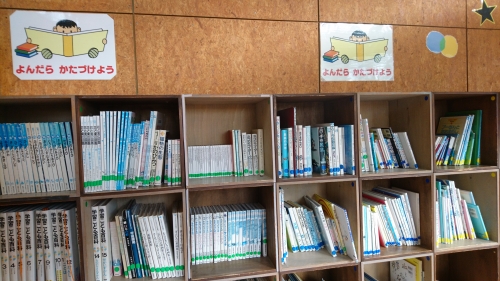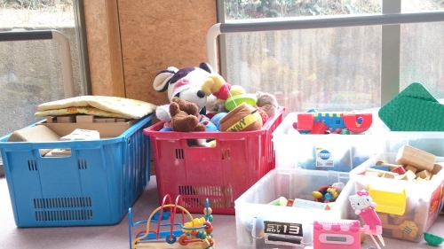 そうぞう館には、飲食可能な休憩スペースや、図書コーナー、幼児用おもちゃがたくさん置いてあります。