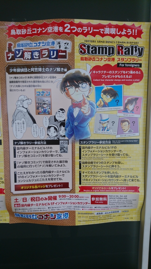 鳥取砂丘コナン空港に来られた際はぜひラリーに挑戦して謎を解き、コナン君達に会うと共に記念の景品も手に入れて下さいね!