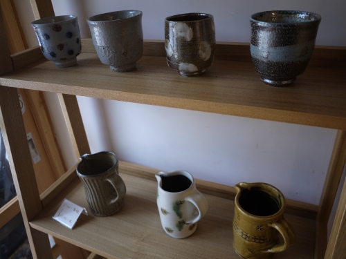 クラフト館 岩井窯では、器の購入も可能です。蕎猪口、コーヒーカップ、皿、ピッチャーなど、お気に入りの器を探してみてください。