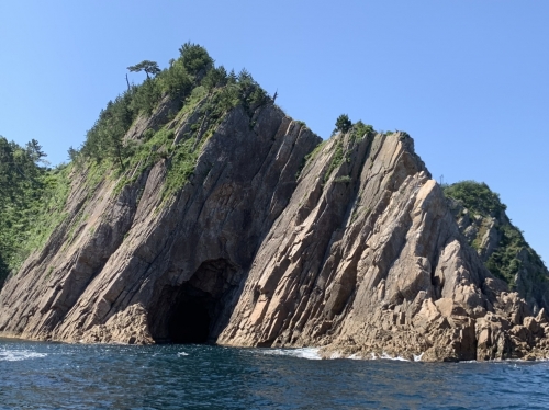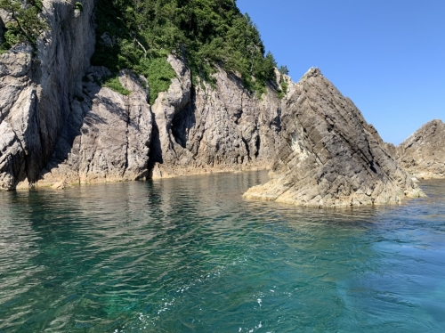 遊覧船のりばを出発し、網代港を出ると、すぐに日本海の荒波と風雪が彫り上げたダイナミックな景色が見えてきます。