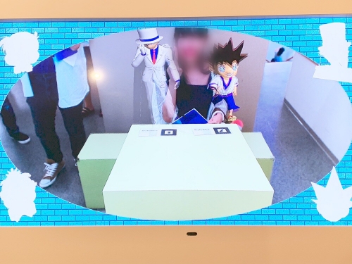 3Dキャラクタービジョンでは、受付で渡される入館券を裏返し台の上に置くと、3Dのキャラクターが画面上に出現し、一緒に写真撮影ができますよ。