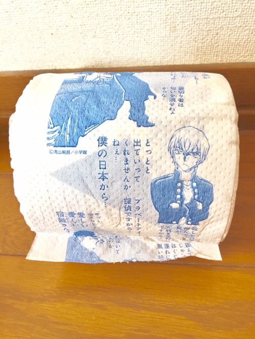 作中に出てくる名台詞とキャラクターが描かれたトイレットペーパー(再生紙・2枚重ね)で、1個300円(税抜き)。