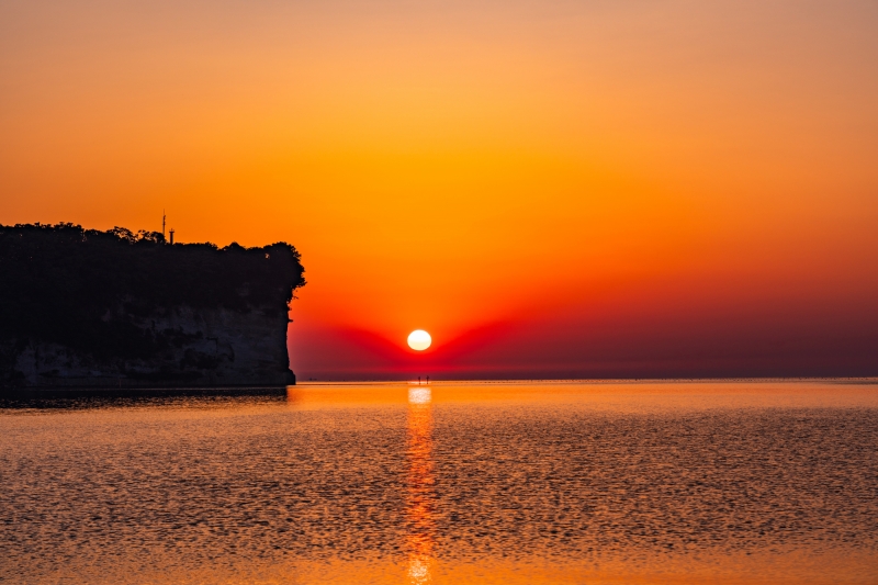 氷見市街地の北に、海へ大きく突き出している断崖絶壁があります。ここにはかつて阿尾城という城があり、三方を海に囲まれ難攻不落を誇っていました。現在は公園として整備されていて、往時の面影が感じられます。