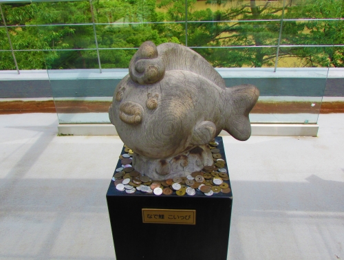 見晴らしの良い鯉恋の宮の中にはシンボルキャラクターの「こいっぴ」が鎮座しています。こいっぴの尾ひれをなでると良い人と知り合える、唇をなでれば開運、全身をなでて健康、目とウロコは金運など、なでる場所によって様々なご利益が得られるそうです。