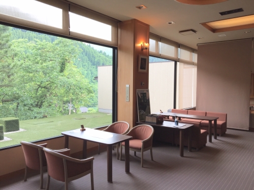 広縁の窓からは、庄川峡や山々の景色を眺められます。