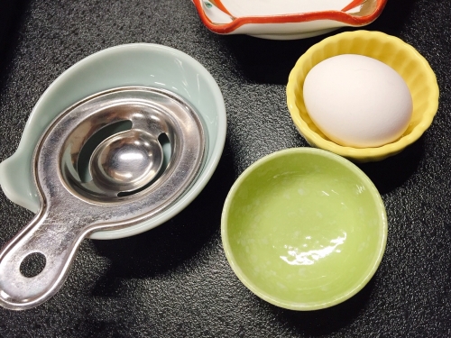 こちらの卵かけご飯のやり方が特殊で、まず始めに専用の道具を使い黄身と白身に分けます。次に、白身をご飯にかけ、混ぜます。