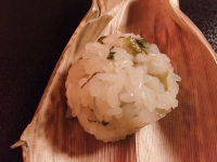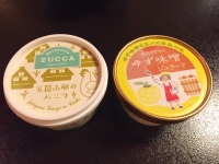 写真:トラベルライター 五箇山卵のバニラ(左)、庄川そだちのゆず味噌ジェラート(右) |  写真:トラベルライター 野沢菜のおこわ |  写真:トラベルライター 栃餅 |