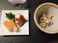 写真:トラベルライター 造り |  写真:トラベルライター 逸品(左)、香の物(右) |  写真:トラベルライター 水菓子 |