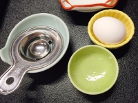 写真:トラベルライター 野菜が使われた特製のつけダレ |  写真:トラベルライター 焼物 |  写真:トラベルライター 黄身と白身を別ける道具(左)、米寿の卵(右) |
