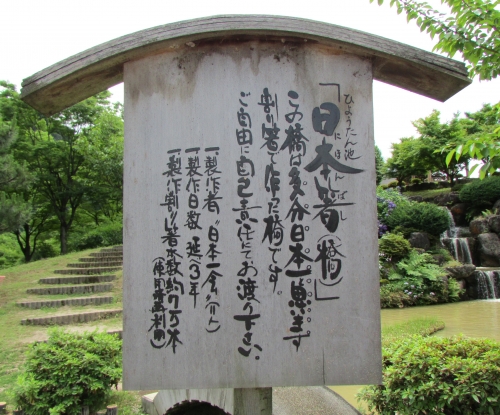「ひょうたん池」のくびれ部分には、使用済の割り箸7万本を固め3年がかりで製作された「日本箸(橋)」がかかっています。
