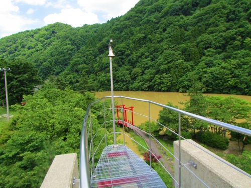 取材日は豪雨の翌日だったため水の色が濁っていますが、普段はエメラルドグリーンの美しい水面を見ることができます。