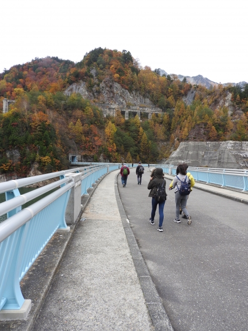 これが、昭和31年に工事を着工し、完成までに7年間、171人の尊い命が奪われたことでも知られる黒部ダムです。観光客が二つのルートに分かれて進むため、扇沢のような混雑は見られません。