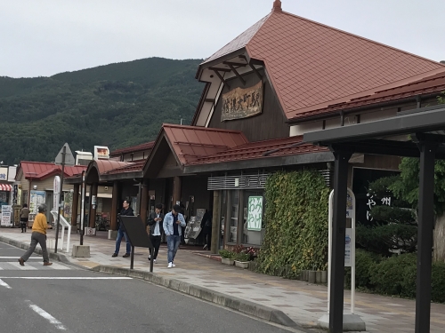 左の写真がJR信濃大町駅。「大町温泉郷行き」のバスは出口を出て左側にあります。温泉郷には宿以外の飲食店はあまりないので、ランチは温泉郷に着くまでに済ませ、夕食は宿泊先で、というようにするのがいいでしょう。