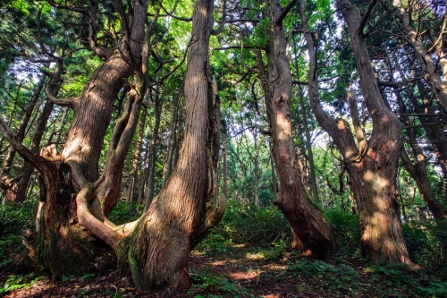 樹齢1,000年を超えるとも言われる巨木群が幻想的