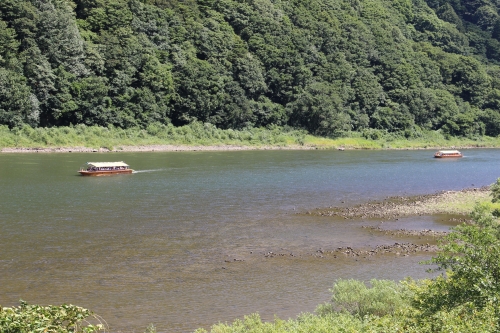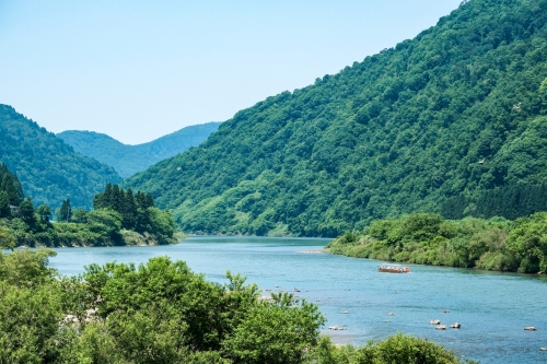 雄大な景色を眺めながらゆったりと川を下る「最上峡芭蕉ライン舟下り」が運行されており、船頭が唄う最上川舟唄を聴きながら、風情ある船旅を体験できます。舟下りは1年を通して楽しめ、冬にはこたつ船に変わります。