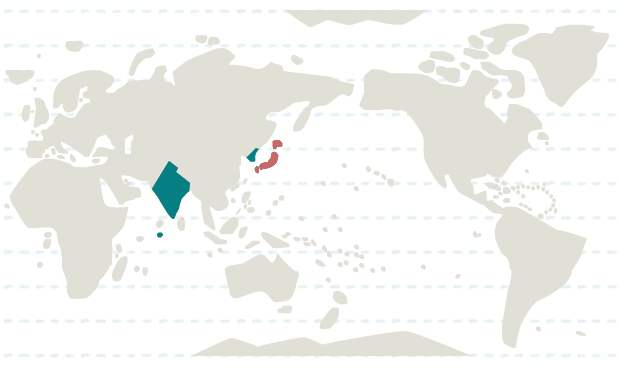 日本、イギリス領インド洋地域、インド、韓国、北朝鮮