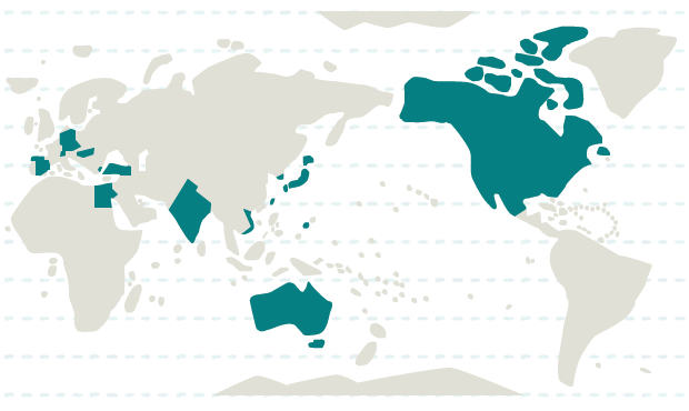 北海道、岩手、宮城、秋田、山形、福島、茨城、栃木、群馬、埼玉、千葉、東京、神奈川、新潟、富山、石川、福井、山梨、長野、岐阜、静岡、愛知、三重、京都、大阪、兵庫、奈良、和歌山、鳥取、島根、岡山、広島、山口、香川、愛媛、福岡、佐賀、長崎、熊本、宮崎、鹿児島、沖縄