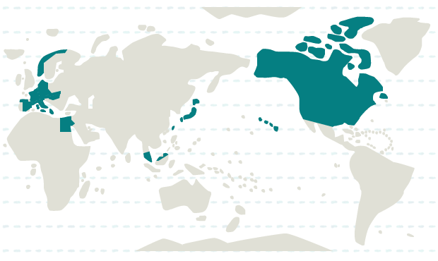 アンドラ、イタリア、オーストリア、オランダ、サンマリノ、スイス、スペイン、スロバキア、チェコ、デンマーク、ドイツ、ノルウェー、バチカン、ハンガリー、フランス、ベルギー、マルタ、モナコ、リヒテンシュタイン、ルクセンブルク