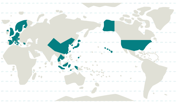 インドネシア、韓国、台湾、中国、香港、カンボジア、タイ、日本、マカオ