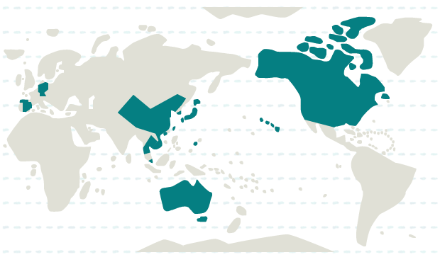 韓国、カンボジア、シンガポール、タイ、台湾、中国、ベトナム、マカオ、日本