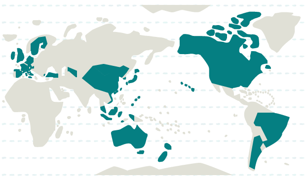 台湾、中国、ベトナム、香港、マカオ、マレーシア、モンゴル、日本、インドネシア、韓国、シンガポール