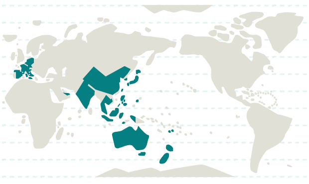 インド、インドネシア、韓国、カンボジア、シンガポール、タイ、台湾、中国、フィリピン、マレーシア、日本