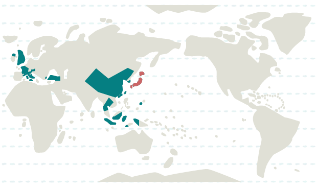 インドネシア、韓国、タイ、台湾、中国、香港、マカオ、日本